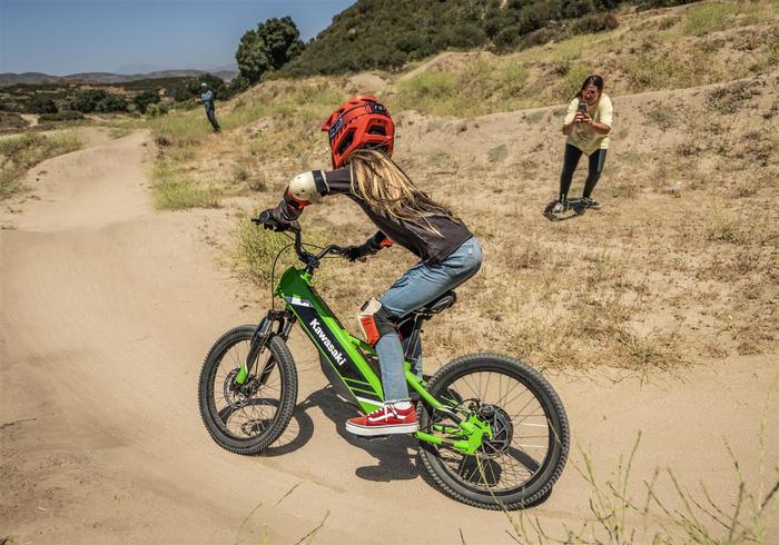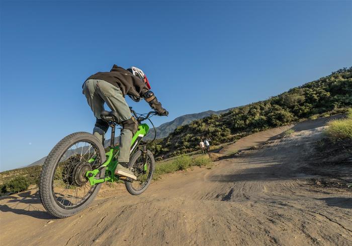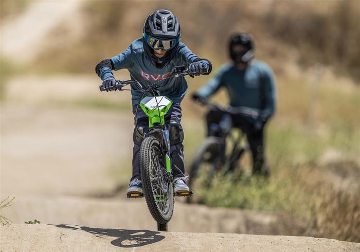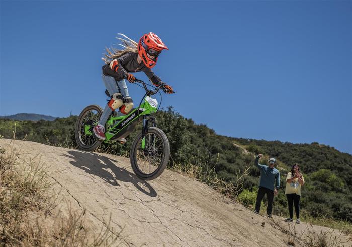 Bezřetězový pohon a tichý provoz - Absence řetězu snižuje počet pohyblivých částí, zatímco tichý, elektrický provoz eliminuje hluk výfuku, díky čemuž je Elektrode 20 méně hlučný než například malý terénní stroj, jako je KLX110R, nebo KLX140R.