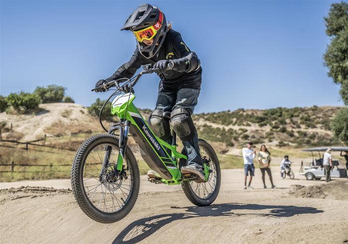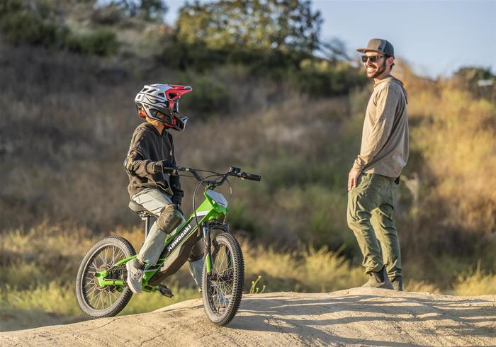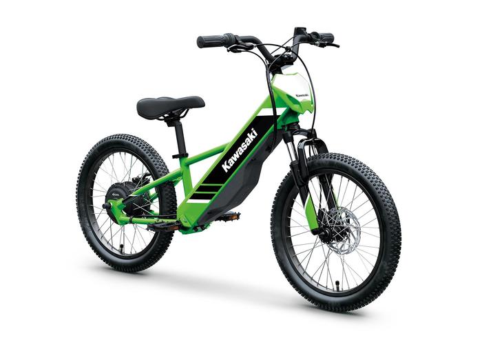 Styling inspirovaný motokrosovými speciály Kawasaki - Mladí jezdci si zamilují styl inspirovaný motokrosem, jako je poznávací tabulka na startovní číslo vpředu, barva Lime Green skvěle spárovaná s grafikou Kawasaki a kola inspirovaná off-roadem.