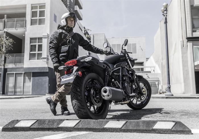 Kromě toho, že dvojité zadní tlumiče přispívají k jízdnímu komfortu a přirozené ovladatelnosti, připomínají styl původních ortodoxních motocyklů Kawasaki Eliminator.