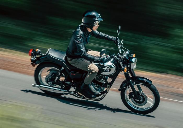 Povedený vintage design dvoumístného sedadla s bílým lemováním, lakované ocelové blatníky vpředu i vzadu a velká drátěná kola dodávají novému Meguru S1 vzhled připomínající původní modely značky Meguro z minulého století a vytvářejí charismatický vzhled, který ocení všichni fanoušci klasických motocyklů.