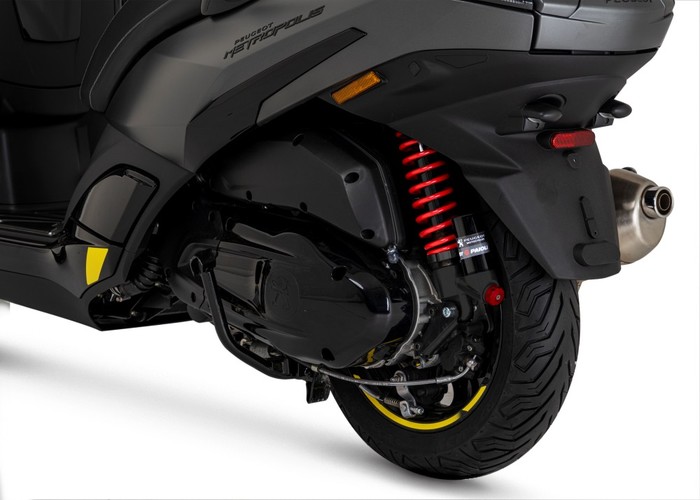 Po technické stránce tu máme speciálně vyvinutý motor Peugeot PowerMotion 400i s výkonem 26,2 kW a maximálním točivým momentem 38,1 Nm, který nastupuje už při 5 750 otáčkách za minutu. Díky tomu je jízdní projev Metropolisu velice dynamický. Motor splňuje aktuálně platnou emisní normu Euro 5.Výkon pomáhají krotit spolehlivé kotoučové brzdy s kombinovaným systémem ABS a SBC a samozřejmě také pečlivě odladěný podvozek s promyšleným systémem zavěšení předních kol, který vás bezpečně provede kteroukoliv cestou. Verze GT a SW mají navíc na míru vyvinuté plynové tlumiče Paioli.