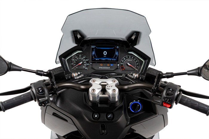Mezi hlavní lákadla patří systém i-Connect® vyvinutý ve spolupráci s automobilkou Peugeot. Na barevném 5" TFT displeji se po propojení s telefonem zobrazují příchozí hovory, zprávy a další upozornění. Velkou výhodou je GPS navigace Here Wego s předplacenými aktualizacemi na 2 roky zdarma, která vás bezpečně provede každou vaší cestou do neznáma. Systém i-Connect® svému uživateli dále nabízí údaje o venkovní teplotě, hladině paliva, průměrné spotřebě, dojezdu, čas a datum, teplotě motoru, stavu baterie, upozornění na servisní intervaly, počítadlo kilometrů a obrácený otáčkoměr, to vše je zabaleno do krásného grafického prostředí přístrojovém panelu. Uživatel může nastavovat úroveň a barvu podsvícení nebo si vybrat, které informace chce zobrazovat. Pro plnou spolupráci systému i-Connect® s telefonem je zapotřebí mít nainstalovanou oficiální mobilní aplikaci Peugeot Motocycles. Verze Active nenabízí GPS ani propojitelnost s telefonem.