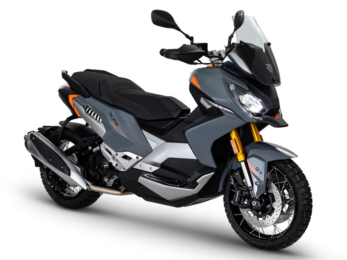 XP400 GT nabízí unikátně stylizovanou verzi. Díky kouřově zbarvenému plexi štítu, high-endovému odpružení a ostře řezanými liniemi XP400 zosobňuje sílu a dynamiku, tolik důležitou pro tento segment. Drátová kola jsou obutá do Pirreli pneumatik o rozměrech 110/70-17 vpředu a 160/60-15 vzadu, což zaručuje ještě větší přiblížení ke klasickým motocyklům. Lehce off-roadový vzorek nepochybně podtrhuje versatilitu tohoto modelu.